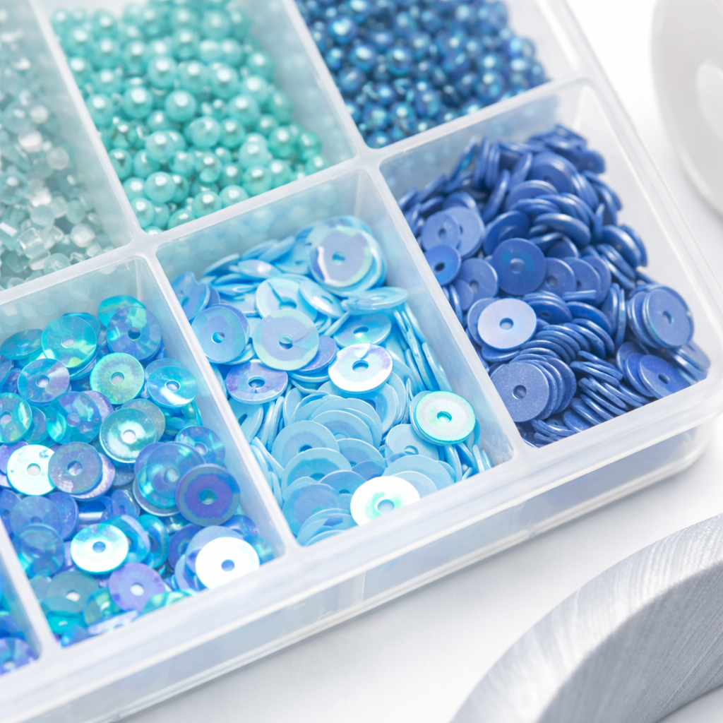 -Caja de 10 compartimientos con mostacillas y lentejuelas